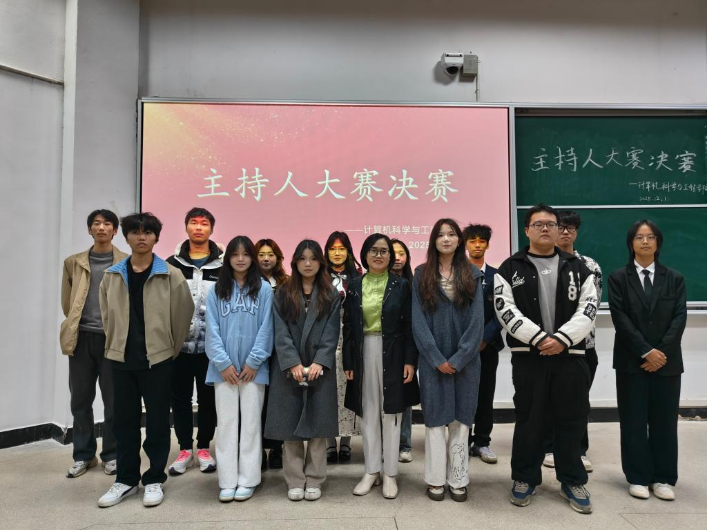 12月1日晚,计算机科学与工程学院在信息楼2113成功举办主持人大赛决赛。学院组织员李玉秀、团委学生会主席团成员李琪康以及主持队成员陈佳奇、彭一健出席并担任评委。