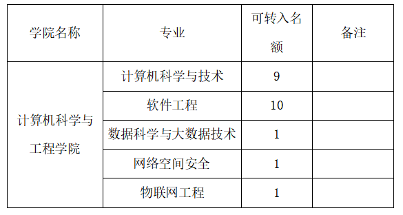 2、学院各专业转入专业学生人数参照下表: