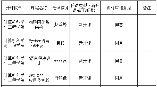 附:2024-2025-2学期计算机科学与工程学院新开课、开新课教师资格审查汇总表