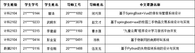 根据《best365中国官方网站毕业设计(论文)管理办法》要求,学生须按期完成各阶段论文撰写及提交。经核查,以下5位同学未能在2025年4月22日前提交论文初稿,经上报计算机科学与工程学院教学委员会讨论审核,现根据规定作出如下处理决定: