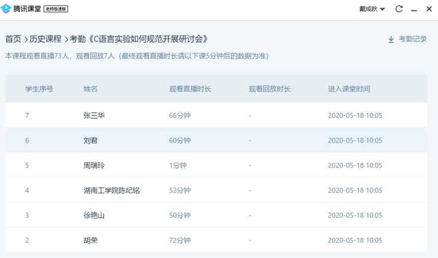 (2) 4-8周的实施阶段。每次实验课,各授课教师按课表通过雨课堂或腾讯课堂直播工具开展15-20分钟左右讲解与演示,布置学生在PTA平台上开展程序设计实验,并做好监督记录。