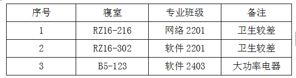 寝室是大学生日常生活和学习的重要场所,寝室环境与大学生生活息息相关,为做好我院寝室文明建设工作,确保大学生有一个良好的生活环境,生活部在本周进行了查寝,以下公布第二周的查寝情况: