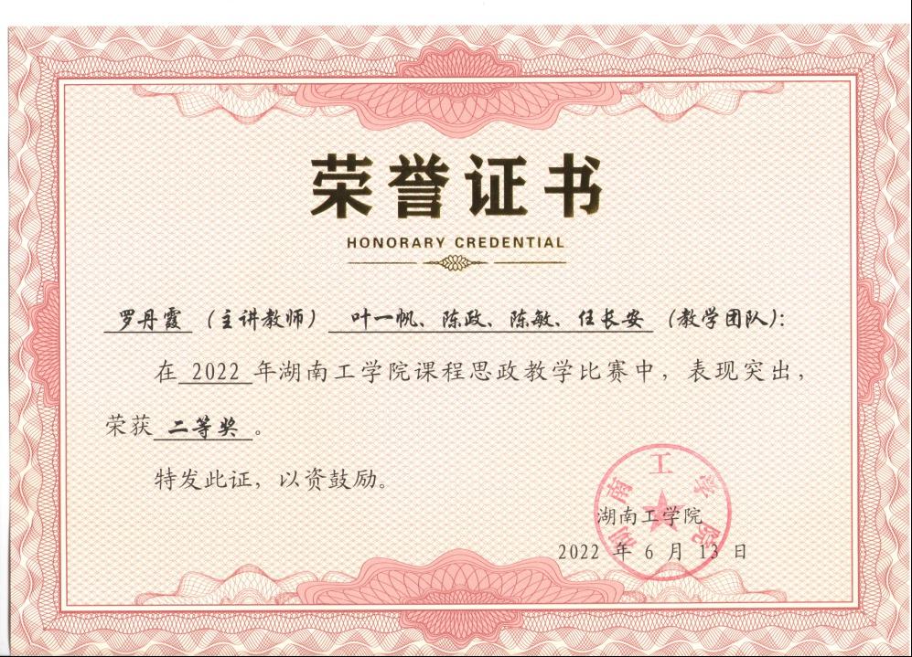 经过多年来的总结与沉淀,2021年在课程组的共同努力下,罗老师取得了湖南省线下一流本科课程立项。同时,她所带的教学班级数据2001班达到了85%的优良率;指导学生参加竞赛,并取得多项佳绩,如全国蓝桥杯总决赛一等奖一项,二等奖一项,全国蓝桥杯湖南赛区大赛一等奖两项等。