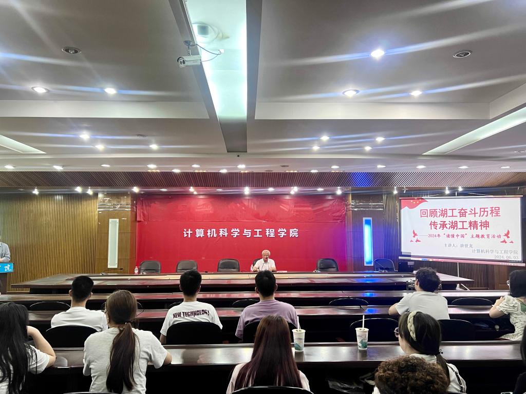 为深入学习贯彻习近平新时代中国特色社会主义思想和党的二十大精神,充分发挥“五老”亲历者、见证者、实践者的优势,引导和鼓励广大青年学生在新时代新征程上贡献青春力量,6月3日晚,计算机科学与工程学院邀请best365原副院级督导唐世龙研究员作“回顾湖工奋斗历程 传承湖工精神”的主题讲座。讲座由学院党委书记叶正明主持,学院学生代表100余人参加本次活动。