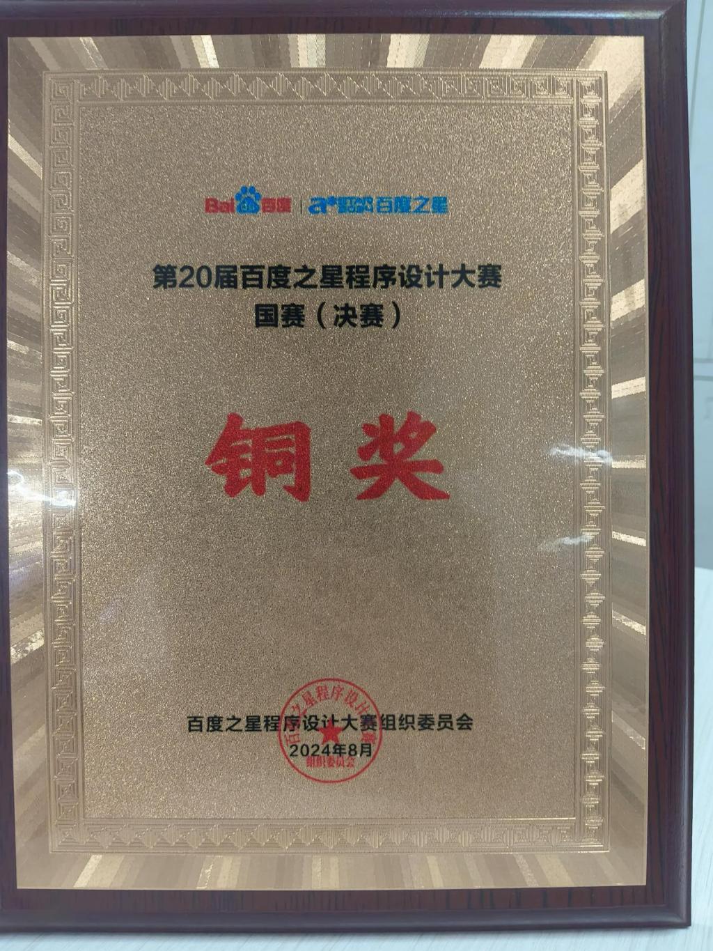近日,第二十届“百度之星”程序设计大赛全国总决赛在北京举行,经过5小时的激烈竞争,我院软件工程2203班学生刘志毫同学最终荣获铜奖。在6月份的三轮省级初赛中,刘志毫同学获得省赛金奖,另有5名同学(陈翔、王江和、万鑫杰、黄毅增、李欣茹)获得省赛铜奖,取得了best365历年参加该赛事的最佳成绩!