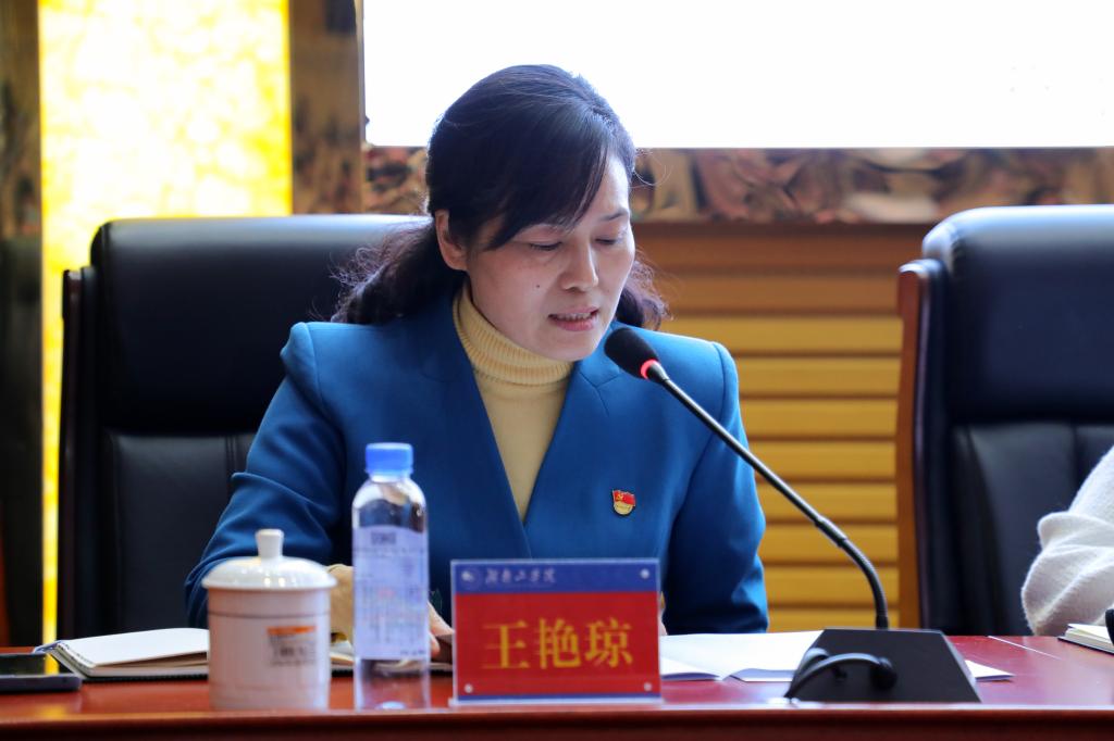 会上,王艳琼作题为《全面贯彻党的自我革命重要思想纵深推进新征程纪检监察工作高质量发展》的工作报告。系统总结了2023年学校纪检监察工作,全面安排部署了2024年工作。她强调,坚持以习近平新时代中国特色社会主义思想为指导,全面贯彻落实党的二十大、二十届二中全会精神和中央纪委、省纪委全会、全省教育系统全面从严治党工作会议部署。以高质量发展为主线,以深化作风整治和推进“清廉湖工”建设为重点,以提升监督效能为突破,以队伍建设为保障,纵深推进正风肃纪反腐,推动全面从严治党向基层延伸、向重点发力、向系统推进,为建设特色鲜明的区域性高水平应用型大学提供有力保障。要突出“两个维护”,在抓实政治监督上持续发力。要强化系统治理,在提高日常监督质效上持续发力。要深化统筹推进,在全面建成“清廉湖工”上持续发力。要保持高压态势,在“三不腐”一体推进上持续发力。要坚持严防严治,在作风建设向上向好上持续发力。