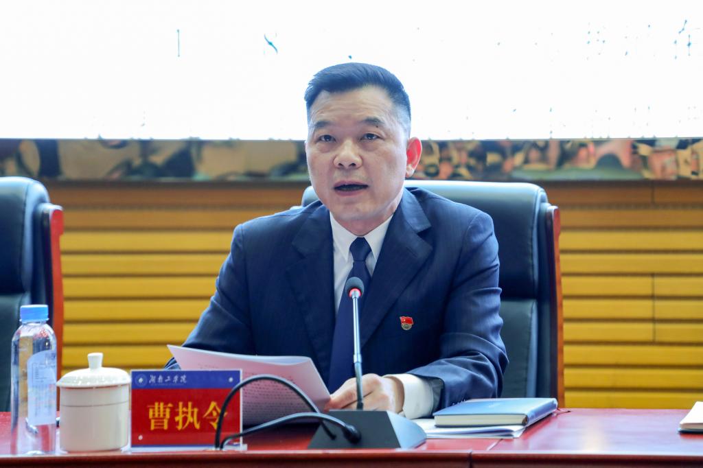 曹执令指出,习近平总书记在二十届中央纪委三次全会上深刻阐述党的自我革命的重要思想,科学回答我们党“为什么要自我革命”“为什么能自我革命”“怎样推进自我革命”等重大问题,明确提出“九个以”的实践要求,对持续发力、纵深推进反腐败斗争作出战略部署。他要求学校各级党组织和党员干部深刻领悟党的自我革命重要思想,深刻领悟自我革命对于高质量发展的重要意义,切实增强履职尽责的使命感和有效性。他指出,2023年,学校党委统揽发展大局,坚定扛好全面从严治党政治责任,全面从严治党取得了新成效,党的领导全面加强、政治生态持续向好,学校高质量通过了教育教学审核评估,为学校改革发展提供了坚强保障。但学校在管党治党、监督效能、作风建设、纪法意识等方面还存在问题,必须引起高度重视,采取有效措施加以解决。