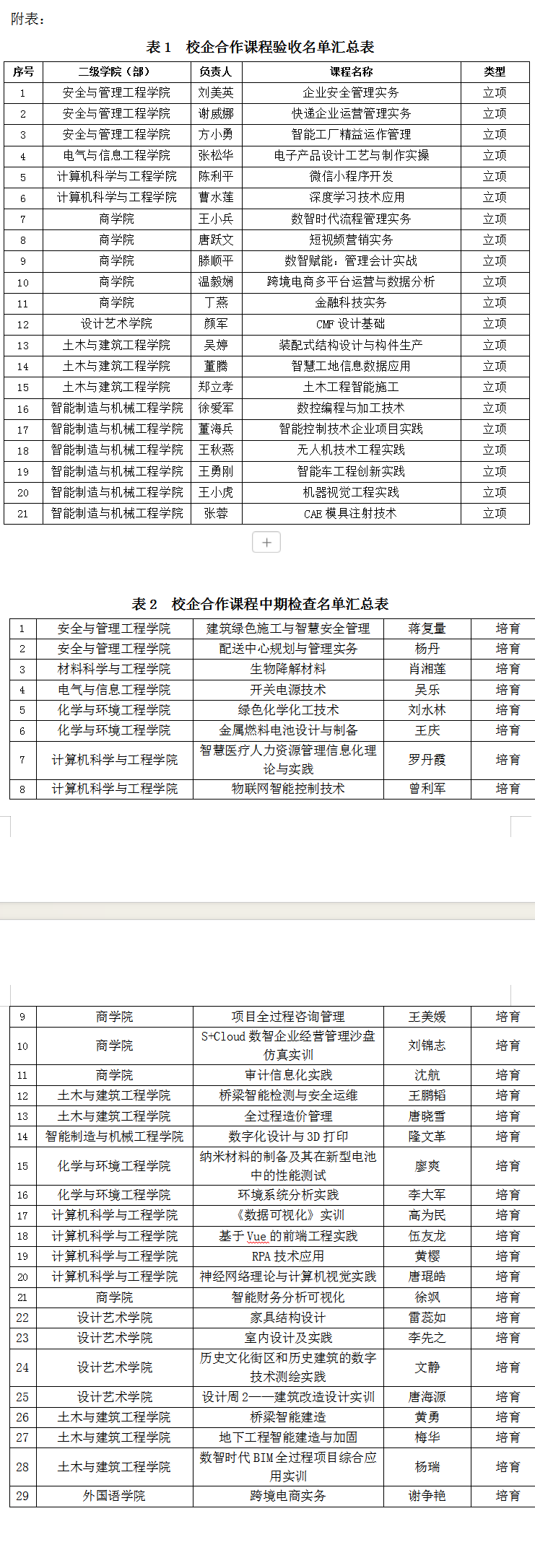 为总结凝练校企合作课程建设成果,推进人才培养模式改革,不断加强内涵建设,持续提高教育教学质量,根据《关于开展2022年度校企合作课程立项建设的通知》(院教务〔2022〕4号)精神,经研究决定开展对第一批校企合作课程结项验收和第二批校企合作课程中期检查工作,现将有关事项通知如下:
