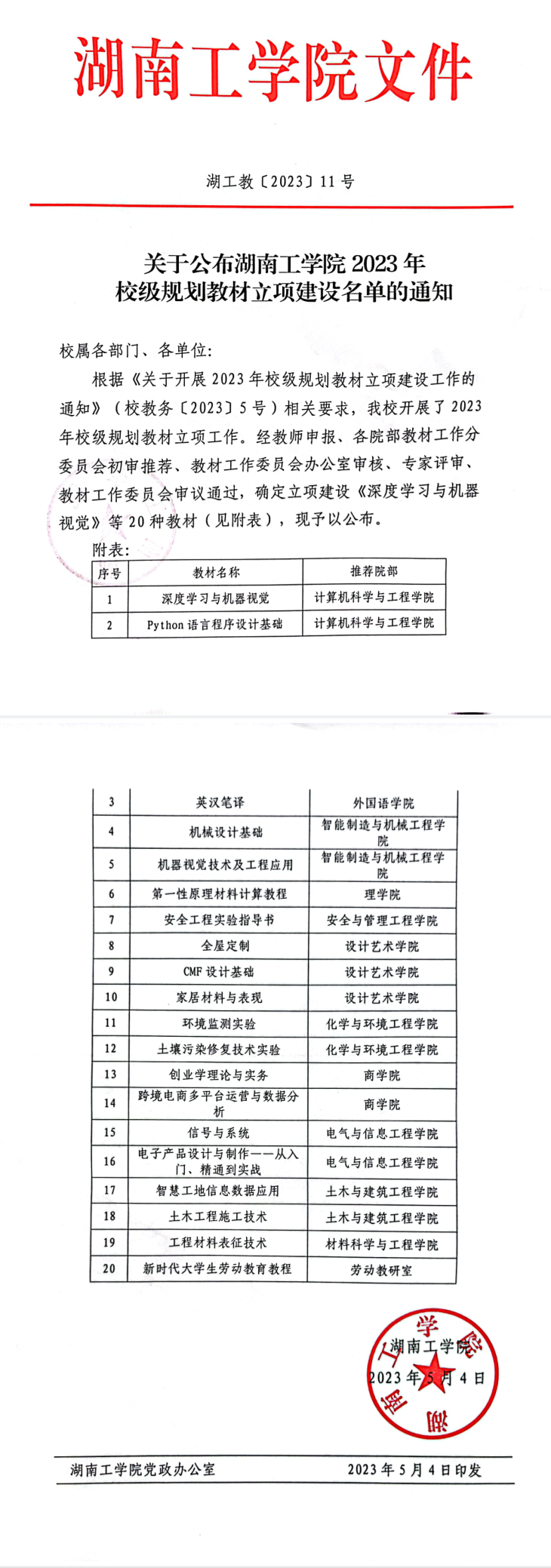 湖工教〔2023〕11号 关于公布best365中国官方网站2023年校级规划教材立项建设名单的通知