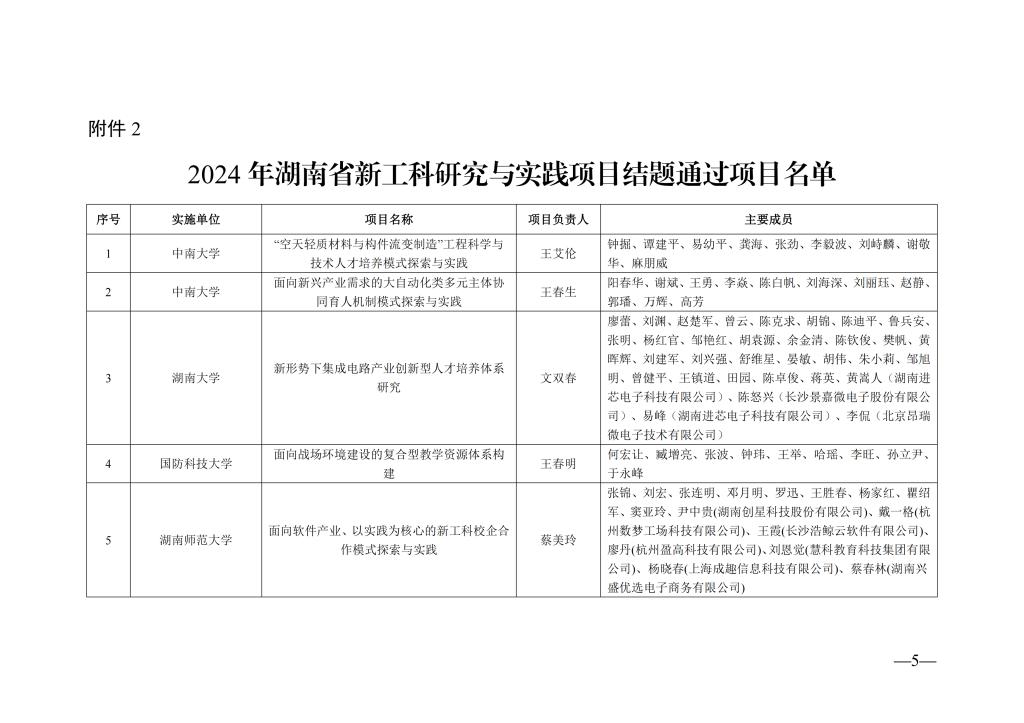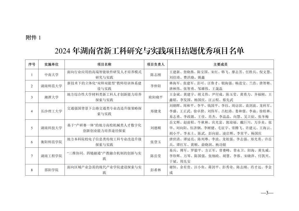 湖南省教育厅关于公布 2024 年湖南省 新工科研究与实践项目结题验收结果的通知