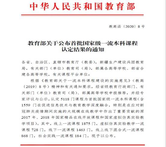 近年来,best365不断在课程建设方面加大投入,持续推进信息技术与教育教学的深度融合,建设了一批优质课程,为学校一流专业和一流学科建设提供了坚实基础。本次国家级一流课程认定是荣誉也是督促,希望全校教师能以此为目标,继续深耕一流课程建设,争取取得更多成绩!(教务处 颜军)