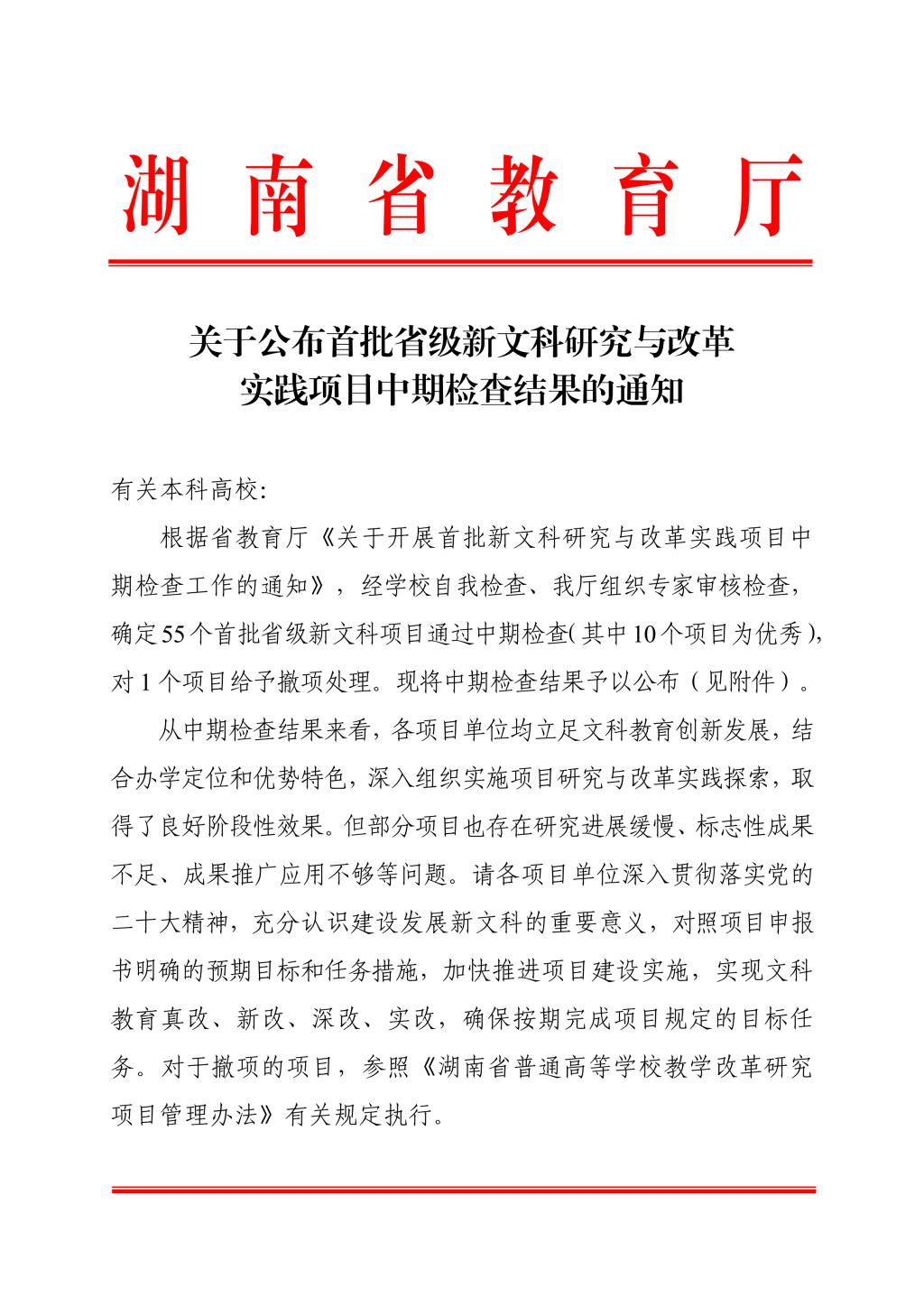 关于公布首批省级新文科研究与改革实践项目中期检查结果的通知(best365中国官方网站)