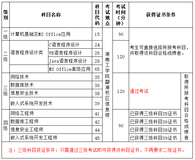 1、报考一、二级、三级的考生当次考试成绩合格后即可取得相应证书(二级语言类及数据库类科目(除二级MS Office科目以外)调整获证条件为:总分达到60分且选择题得分达到20分及以上的考生方可取得合格证书)。