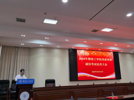 协调会后,教师发展中心组织全体参考教师在教学大楼船山报告厅举行了诚信考试动员大会。会上,吴智再次强调了岗前培训考试的严肃性与重要性,参考教师需秉持“对自己负责、对学生负责、对学校负责”的态度高质量完成本次考试。教师发展中心谭樱樱老师宣读了《考生须知》,要求全体参考教师诚信应考、以身作则、为学生树立良好榜样。新进教师代表、材料科学与工程学院黄海康博士宣读了《诚信应考承诺书》,全体参考教师随后签署了该承诺书。最后,教务处处长李理教授作总结发言,他以“教育的边界是什么”为题,重申作为人民教师的责任与义务,他表示教育教学效果因其难以量化评价,很大程度上只能依赖教师的良心和自我要求。他鼓励教育工作者要对得起自己的良心,对得起那三尺讲台,立大先生之志,行大先生之举,不断提升教育教学水平。