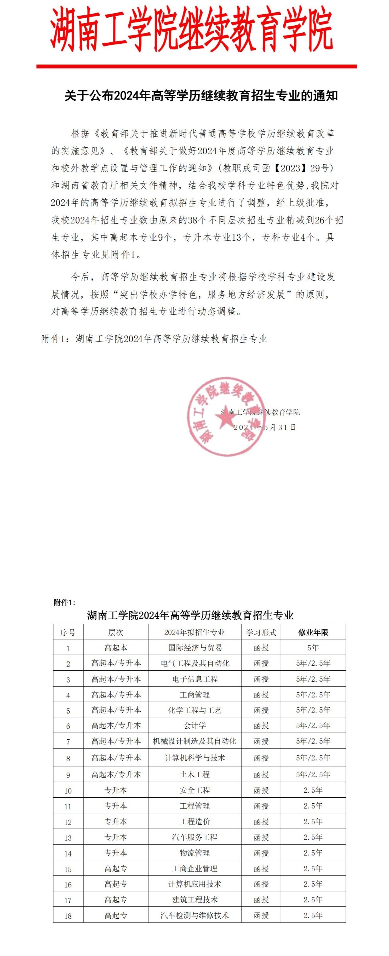 关于公布2024年高等学历继续教育招生专业的通知