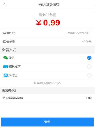按报考省份收费文件执行,学费按年收取,学生本人全额上缴学校。湖南省2023级学生缴费标准不变。