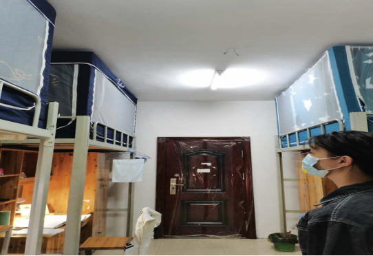 班主任杨京鑫老师在检查宿舍时要求同学们将自己的生命安全放在第一位,在公共场合时应带好口罩、勤洗手,寝室需要保持通风,出门前进行寝室消毒。做好自身的防疫工作即是保证了自己的安全,也保护了他人,杨京鑫还对寝室同学们的口罩储备数量进行了检查,没有的口罩的同学,他要求班长尽快落实口罩事宜。