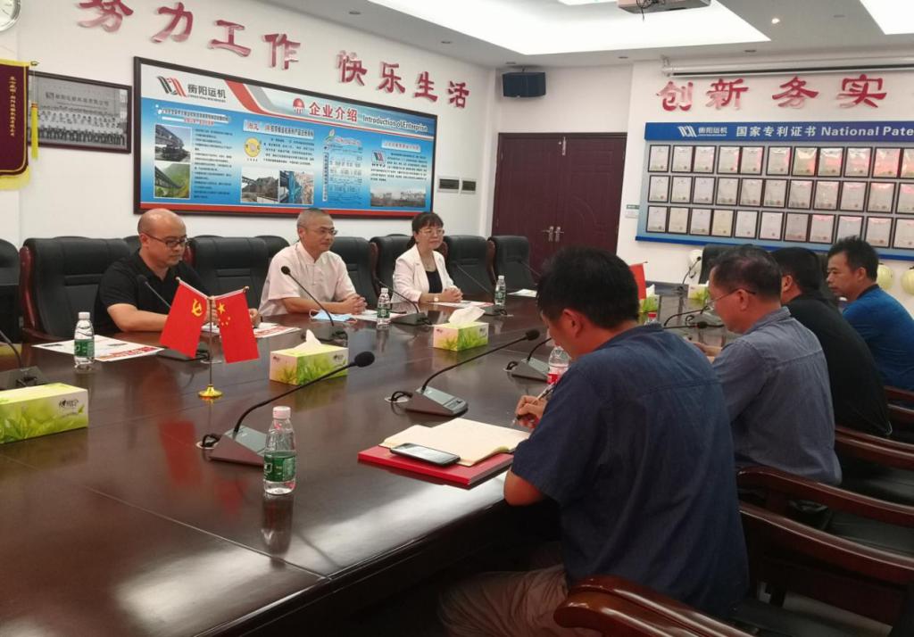 5月29日下午,党委副书记张平带队到衡阳市运输机械有限公司交流基层党建工作,衡阳市运输机械有限公司党委书记黄四元一行热情接待。