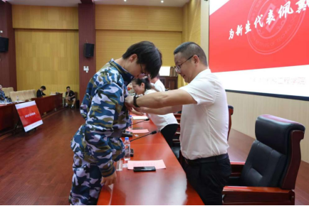 在仪式环节,学院领导为新生代表佩戴了校徽。校徽是荣誉的象征,更是责任的传承。从戴上校徽的这一刻起,同学们便正式成为best365中国官方网站智能制造与机械工程学院的一员,希望同学们铭记这份荣光,以校徽为指引,砥砺品格,刻苦钻研。