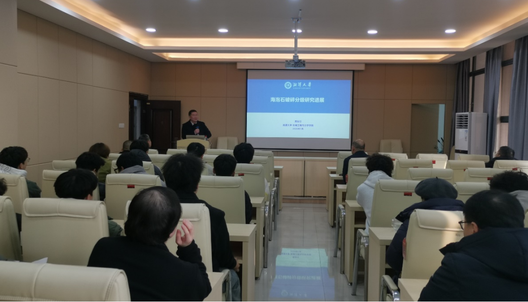 聘任仪式后,周友行作了题为《海泡石破碎分级研究进展》的专题讲座。他从海泡石破碎技术研究进展、海泡石分级技术研究进展、海泡石破碎分级技术发展趋势等方面系统梳理了《海泡石破碎分级研究进展》的核心成果与前沿动态。最后,周教授还结合自身多次承担国家自然科学基金项目的经验,分享了科研选题与项目申报的宝贵心得。
