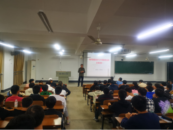 为有效拓展智能制造与机械工程学院学生的视野,了解专业发展前言,2022年11月4日晚上7:00点,学校“三个一批”人才支持对象李天生教授在机械楼4309教室为机械设计制造及其自动化专业部分学生举行了一场题为“现代制造技术与中国制造业的发展现状”的学术讲座。