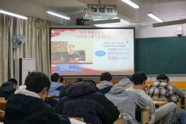 2023年2月28日晚,2023年春季学期“开学第一课”专题讲座在船山报告厅举行,智能制造与机械工程学院在机械楼设置分会场。讲座由学校党委书记宋克慧教授主讲,党委宣传部统战部常务副部长肖中云主持。学院党委副书记、辅导员、班主任、教职员工和全体学生在主会场和分会场收看讲座直播。