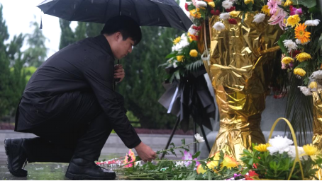 全体人员在烈士墓前献上鲜花,用实际行动深切缅怀革命先烈的丰功伟绩,低头默哀表达对先烈的沉痛悼念和无尽的崇敬。
