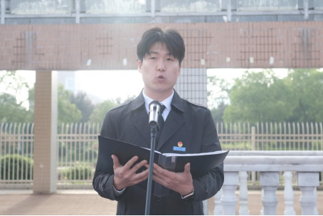 升旗礼毕,在庄严的国旗下,成型2102班刘浩楠同学作为学生代表发言,他说到我们正值青春之际,是承风骨亦有锋芒的中国少年,让我们铭记历史,传承五四精神,让五四精神在新时代焕发出更加璀璨的光芒。