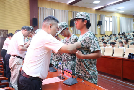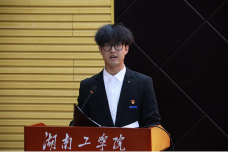 在仪式环节,学院领导为新生代表佩戴了校徽。校徽是学校的标志,戴上校徽既标志着同学们“湖工人”的身份,更激励着同学们肩负起湖工人的责任与使命,传承湖工光荣传统,弘扬新时代湖工精神。