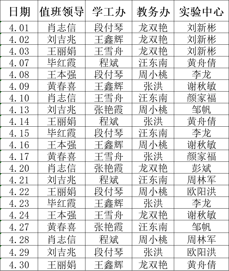 周一至周五每天上午安排一名院领导在校办公、处理相关事务(具体安排见附件)。