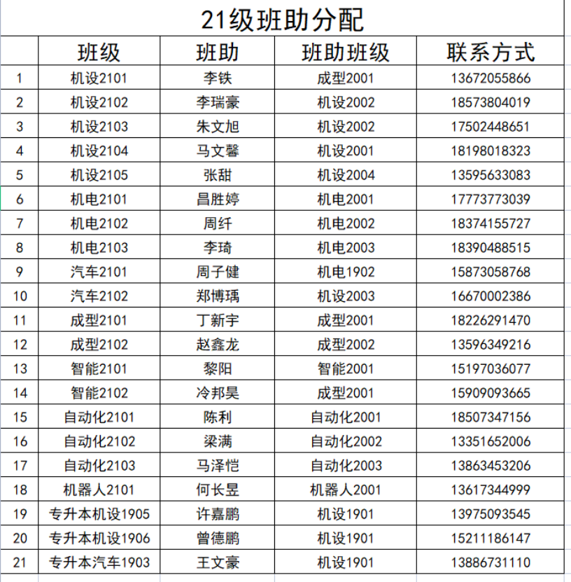 根据《机械工程学院2021级新生班助选聘结果公示》和8月29日上午班助线上面试情况,拟选聘以下21名学生担任智能制造与机械工程学院2021级新生班助,现将名单公示如下: