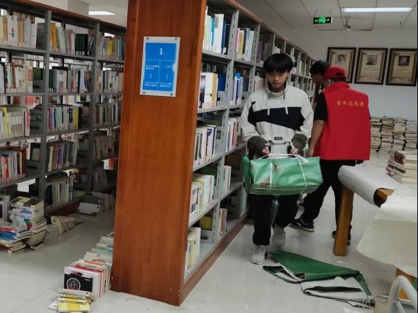 志愿者们各司其职,干劲十足,热情充斥了整个图书馆。老师和志愿者合理安排、几人分工合作,高效快速地把图书馆书籍整理得整齐、有序。