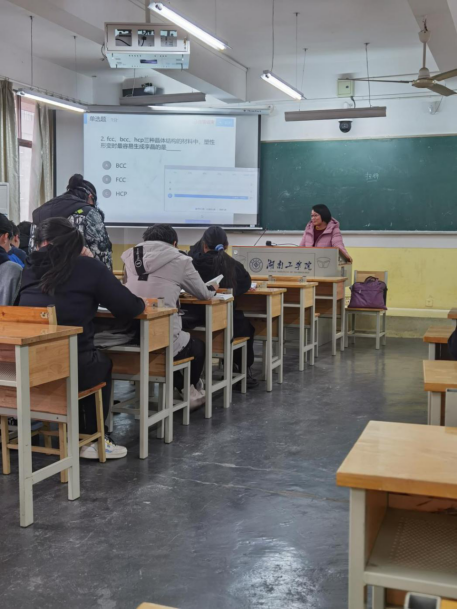 学院联系校领导杨朗委员于12月23日(星期三)上午在4504教室听了学院教师毛祖莉老师给金材1901班上的《材料科学基础》课程,学院领导毕红霞副院长一起参与听课。这是一门采用线上+线下混合式教学改革的专业基础课。