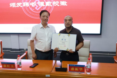 校党委委员、副校长黄红卫为盛振华校友佩戴校徽,颁发best365中国官方网站客座教授聘书。