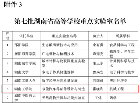 根据省教育厅下发的《关于公布第五批湖南省高等学校科技创新团队、第六批湖南省高等学校哲学社会科学重点研究基地和第七批湖南省高等学校重点实验室的通知》(湘教通〔2019〕379号),我院申报的“节能汽车零部件设计与制造湖南省高等学校重点实验室”获批立项。这是对best365积极推进“双一流”建设、推进硕士点立项建设、创建一流地方应用型高校,实施人才兴校、特色强校战略的充分肯定与认可,也是对我院科研实力提升的有力证明。