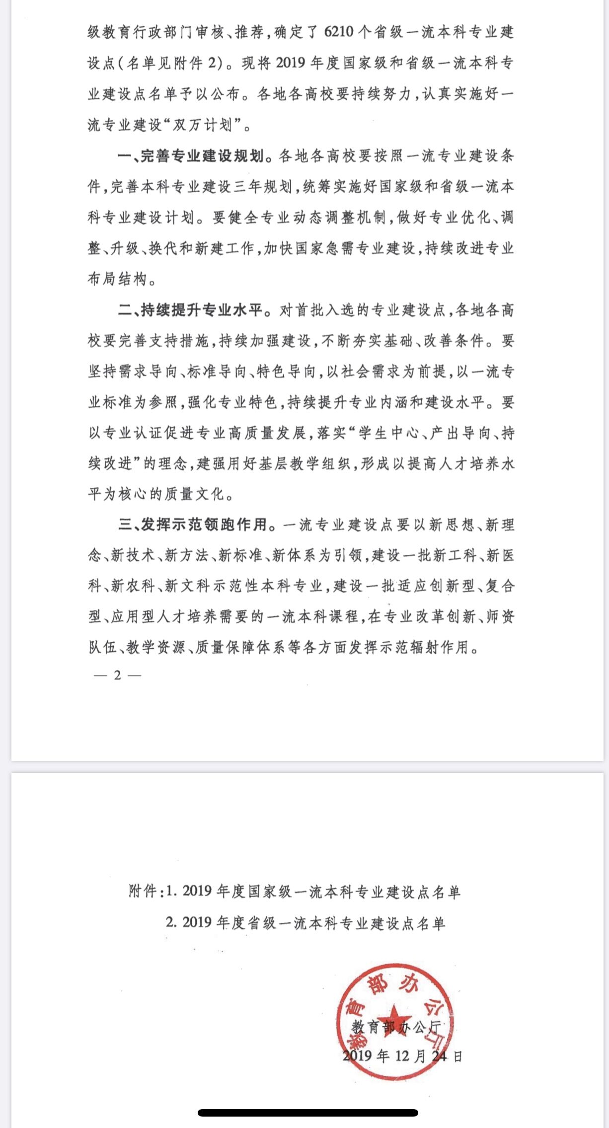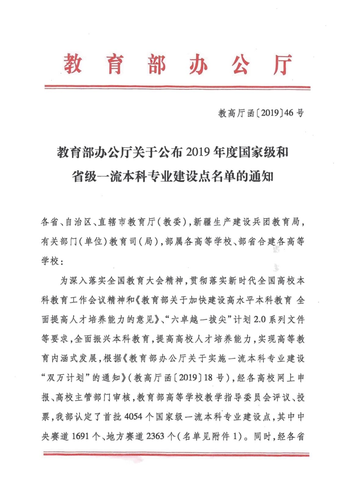 12月24日,国家教育部办公厅下发的《教育部办公厅关于公布2019年度国家级和省级一流本科专业建设点名单的通知》(教育厅函〔2019〕46号),best365机械工程学院申报的机械设计制造及其自动化专业被认定为2019年国家级一流本科专业建设点。