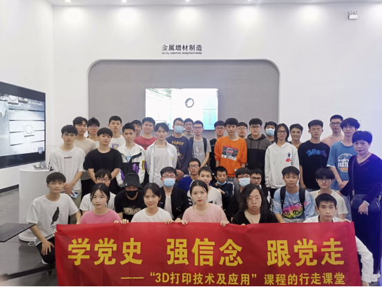 习近平总书记在全国高校思想政治工作会议上强调,要用好课堂教学这个主渠道,各类课程都要与思想政治理论课同向同行,形成协同效应。在中国共产党成立100周年之际,机械工程学院2020级材料成型及控制工程专业学生在衡阳智造谷上了一堂别开生面的3D打印专业课。在教学环节,任课教师张蓉老师围绕《3D打印技术及应用》课程相关知识点,通过案例分享,打造“行走中的课堂”这一实践教学新模式,将“工匠精神”与专业理论教学相融合,在掌握新知识、新技术的基础上,培养了学生自身爱岗敬业、科学严谨、精益求精、实事求是的工匠精神。