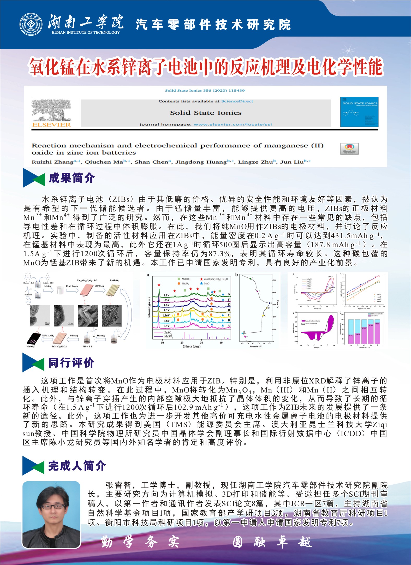 张睿智---氧化锰在水系锌离子电池中的反应机理及电化学性能