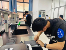 比赛过程中,参赛选手镇定自若、操作熟练,在规定时间内完成对样品的磨制、抛光、浸蚀、显微镜观察等精细操作,现场评委赞许有加。最终选出唐健等8名同学代表best365中国官方网站参加六月下旬的省赛。