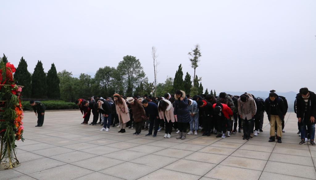 师生们首先来到罗荣桓元帅铜像纪念广场。王丽娟告知学生干部们:罗荣桓元帅是久经考验的共产主义战士,坚定的马克思主义者,伟大的无产阶级革命家、政治家、军事家,中国人民解放军和中华人民共和国缔造者之一,希望全体师生学习罗元帅埋头实干、鞠躬奉献的精神。全体师生带着崇高的敬意向罗荣桓元帅铜像三鞠躬。全体学生干部在团委书记程斌老师的带领下,郑重地重温了入团誓词。之后,大家分组用唱红歌的形式深情表达了自己对革命先驱的缅怀之情和坚决继承革命先烈遗志的决心。