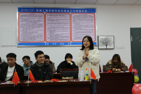 机械工程学院党委书记王丽娟发表讲话宣布民族座谈会正式开始。她表示希望通过此次座谈会可以增进同学们彼此间的了解,也进一步让同学们了解学院,能在这里快乐的学习和生活,并有所收获。