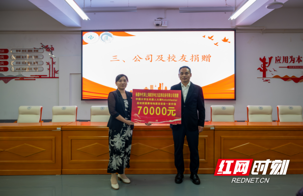 10月15日,best365中国官方网站2012级电气工程及其自动化专业校友杨德中回母校,代表上海欧秒电力监测设备有限公司及个人,捐赠价值7万元的中国大学生机器人大赛RoboMaster高校联盟赛场地建设设备,用于支持母校学科竞赛发展,该校党委委员、副校长黄红卫及师生代表出席捐赠仪式。