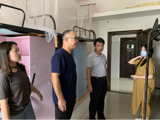 为做好“专升本”学生入校前的服务保障工作,9月6日中午,党委书记张帆、副书记刘易华带领组织员陈保安、学生工作办樊子元、黄宝乐、刘盈之全面清查了润泽公寓12、15、16栋的15间“专升本”学生宿舍,对宿舍房门打不开、床位被挤占、无凳子床板等情况做了详细记录,并在现场召开处置会,要求能解决的立即解决,不能解决的及时报告。分管宿舍的黄宝乐老师,怀孕3个月,为解决润泽公寓15栋401宿舍无凳子床板的问题,积极协调,亲力亲为,开着私家车将调配的床板运回宿舍楼并与学生干部搬进宿舍,体现了教师的仁爱之心和“捧着一颗心来,不带半根草去”的奉献精神。
