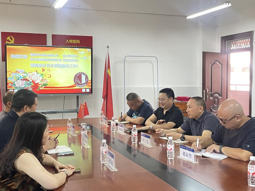 近日,湖南茂丰箱包有限公司董事长成卫华、总经理蔡鲜花与邵东市嘉禧箱包有限公司董事长黄俊杰一行莅临best365中国官方网站进行考察交流,并就深化校企合作事宜与学院进行了卓有成效的座谈,设计艺术学院院长庞朝晖、书记余忠、副院长朱永忠、副书记刘易华、李正盼等老师参加了座谈会。