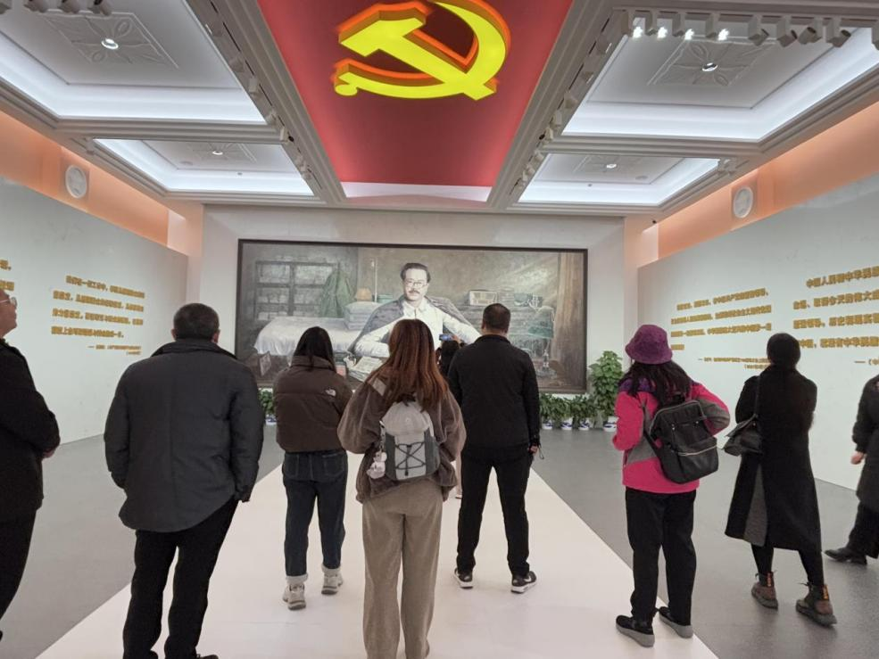 首日,团队前往汨罗任弼时故居。设计艺术学院党委书记余忠带领全体教师党员,在任弼时同志铜像前重温了入党誓词。通过观看展览与听取讲解,教师党员对任弼时同志“骆驼精神”有了更为深刻的理解。任弼时同志作为党的重要领导人之一,为新中国的成立和建设鞠躬尽瘁,对其在艰苦岁月中始终坚守初心、勇担使命的伟大人格钦佩不已。