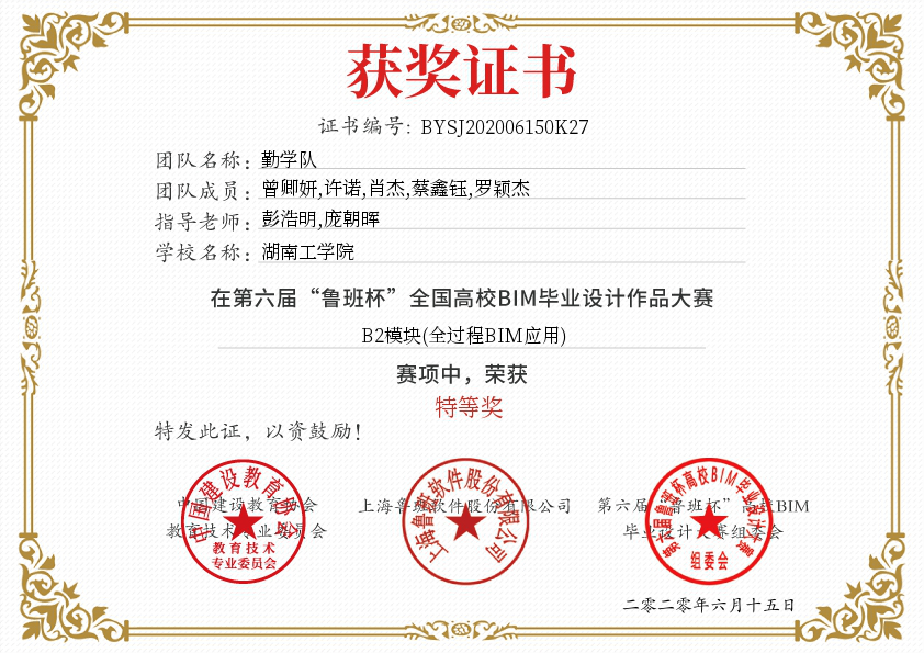 本届大赛分建模、应用两大赛项共计四个模块(专项BIM应用、全过程BIM应用、室内BIM应用、BIM创新应用),总参赛队伍达500组。best365建筑工程与艺术设计学院共组建4支参赛队伍,主要参加“全过程BIM应用”模块比赛。经过两阶段比赛和专家评审, 17所院校共计18支参赛队入围总决赛。best365彭浩明、庞朝晖老师指导的“勤学队”和郑立孝、袁杏老师指导的“卓越队1”同时入围全国总决赛,为唯一一所两支代表队同时入围总决赛院校。