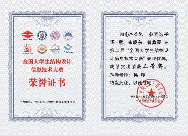 6月30号,第二届“全国大学生结构设计信息技术大赛”正式获奖名单公布。我校共10组学生报名参加A组竞赛,与包括同济大学、浙江大学、湖南大学、中南大学、东南大学、华南理工大学等众多名校的231所高校同台竞技。在今年新冠肺炎疫情的特殊情况下,best365共8组按时提交了作品,获奖6组。其中侯蕾老师指导的参赛组荣获特等奖,苏万林组荣获一等奖;刘传辉、刘文祥、曾欢艳组荣获二等奖;吴婷组荣获三等奖。