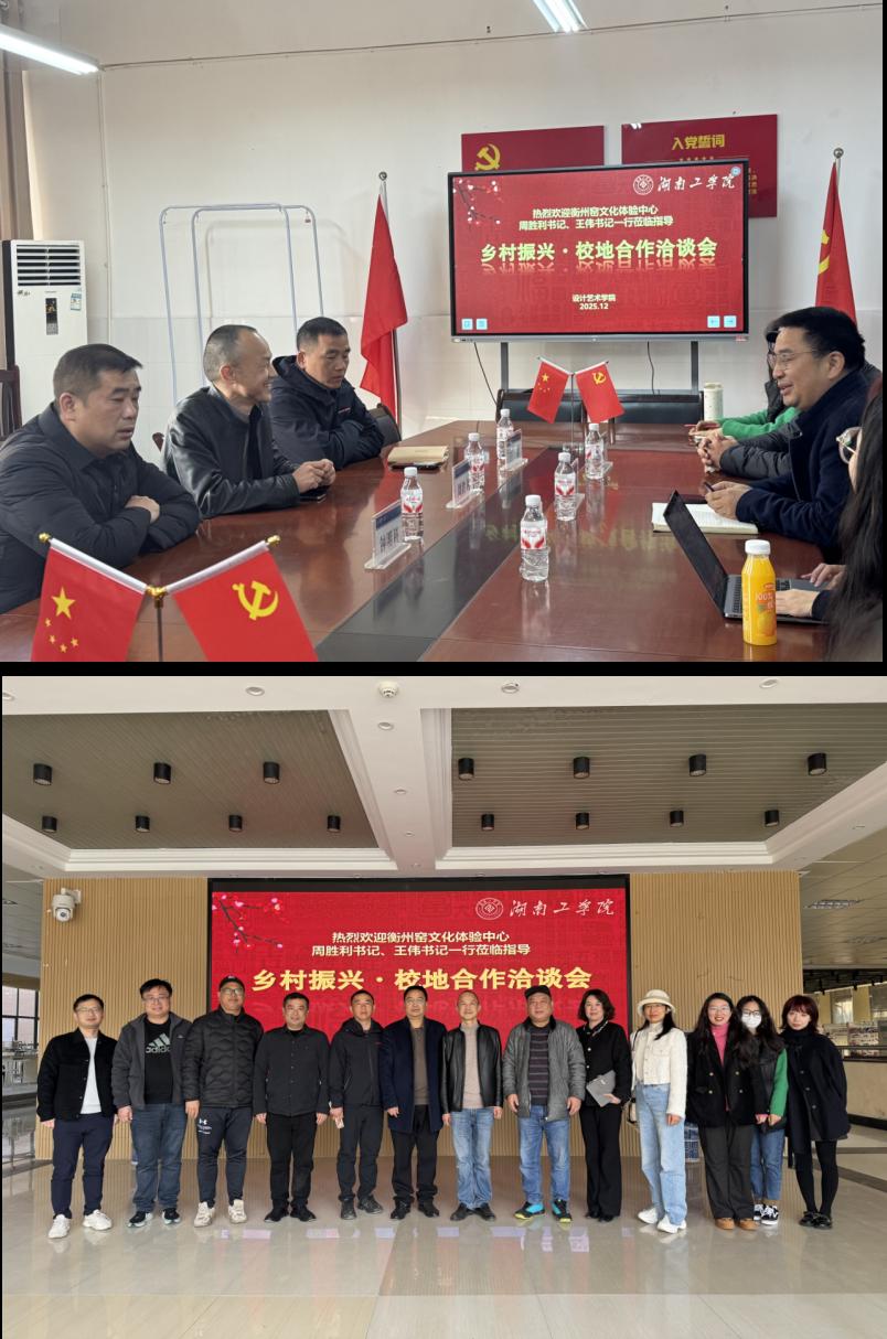 2025年12月8日,珠晖区皇田村第一书记周胜利、书记王伟一行莅临best365设计艺术学院,就深化乡村振兴工作进行深度洽谈。学院党政领导班子及相关教师代表参加会议。