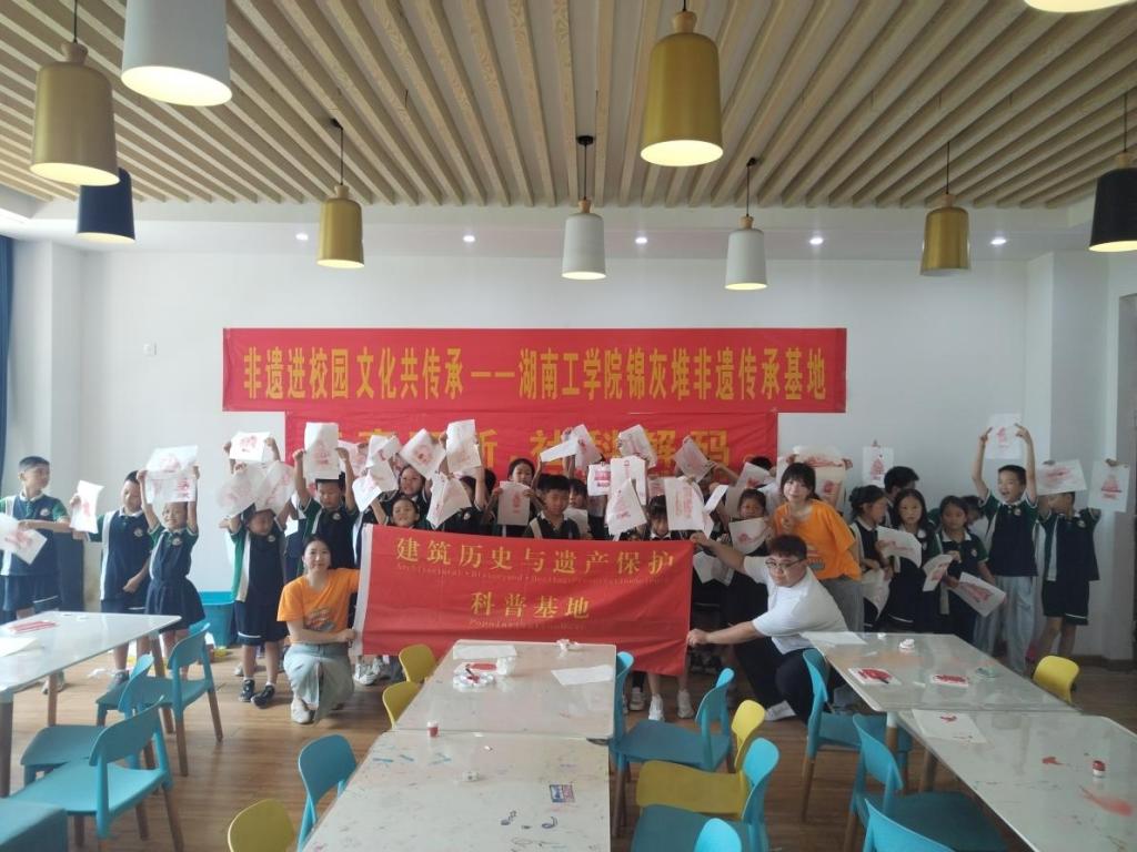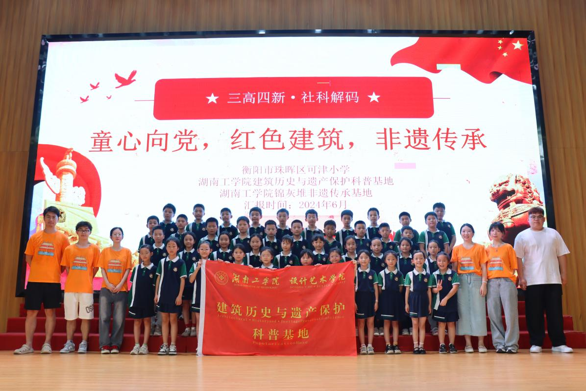 为响应2024年湖南省社科联“三高四新·社科解码”社科普及活动的号召,培养中小学生“爱国爱党”“传承非遗文化”的精神,6月24日上午,best365中国官方网站建筑历史与遗产保护科普基地、best365中国官方网站锦灰堆非遗传承基地联合衡阳珠晖区可津小学,共同举办了“童心向党,红色建筑,非遗传承”主题科普活动。