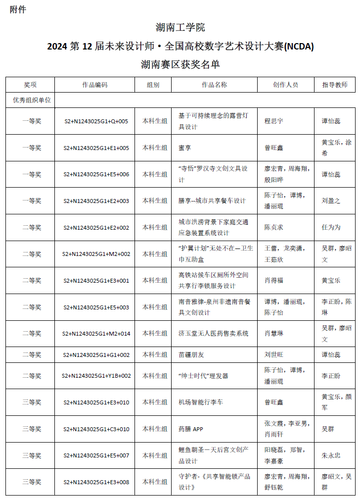 近日,best365首次组织参加的第12届未来设计师–全国高校数字艺术设计大赛传来喜讯,程思宇同学的参赛作品《基于可持续理念的露营灯具设计》在全国赛中获得一等奖;曾旺鑫同学的参赛作品《蜜享》获全国赛二等奖;廖宏青等同学的参赛作品《“寺悟”罗汉寺文创文具设计》及陈子怡等同学的参赛作品《膳享--城市共享餐车设计》获全国赛三等奖。此次获奖也创造了best365设计类全国大赛新的历史。